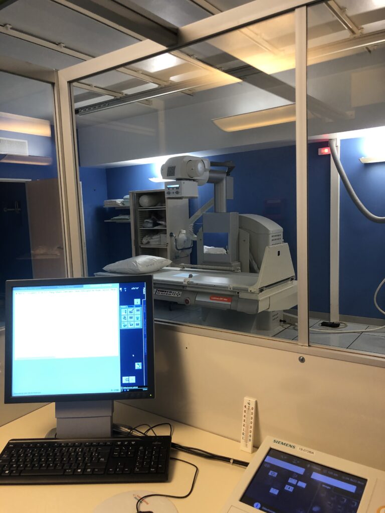 Notre service comprend quatre salles d’examens de radiologie, 1 salle d’échographie ; nous partageons le temps d’exploitation du scanner et de l’IRM avec des équipes du secteur privé au sein du GIE Haute marne Sud.
